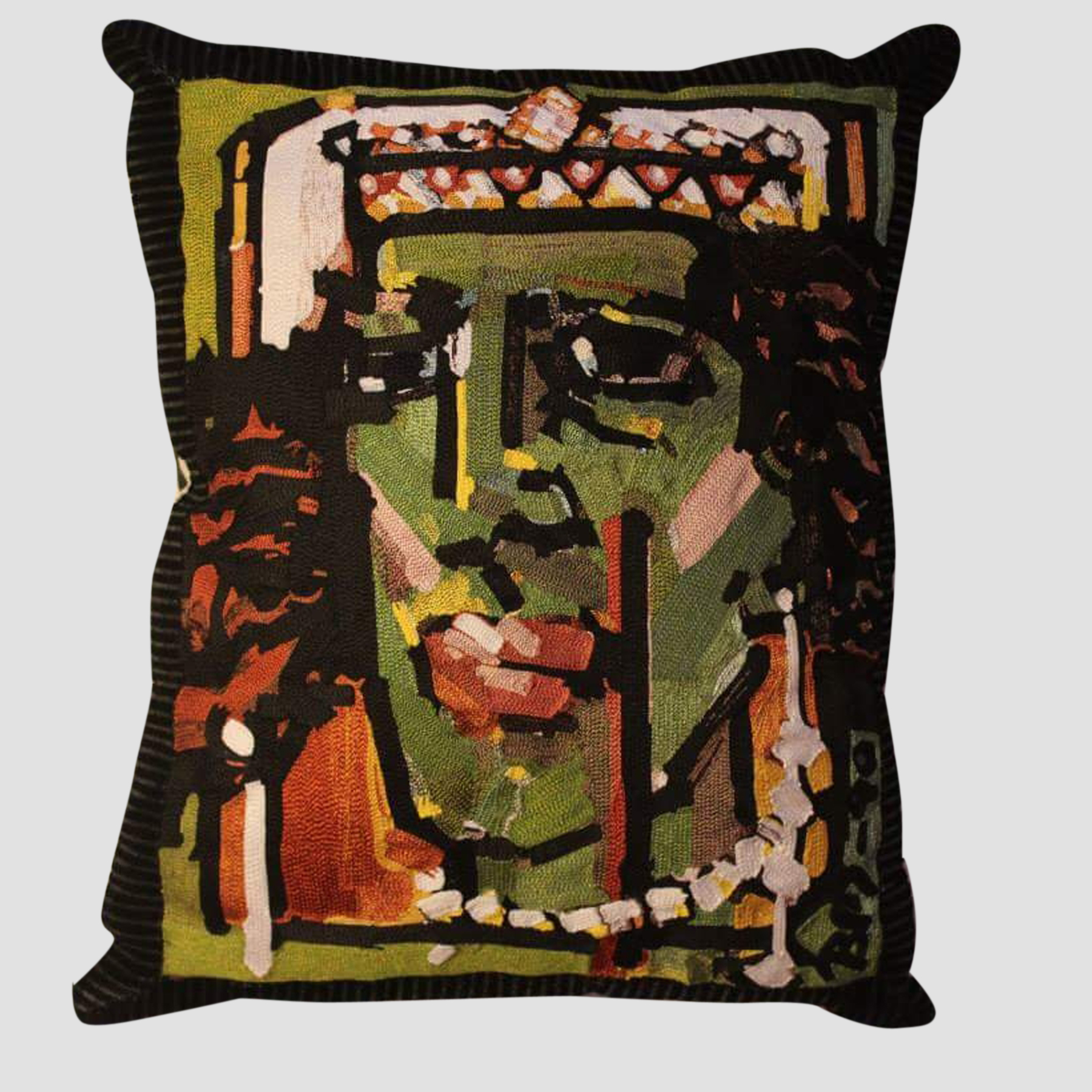 This cushion features a hand embroidered reinterpretation of “Interpretation of ‘Untitled’ (King Series)”, by the champion of strokes, Bashir Mirza. A magnificent marriage of traditional artisan practice and iconic artwork, it is sure to inject energy and style into any home. Each pillow is embroidered by hand and backed in a hand woven striped fabric and comes supplied with a soft polyfibre filler.